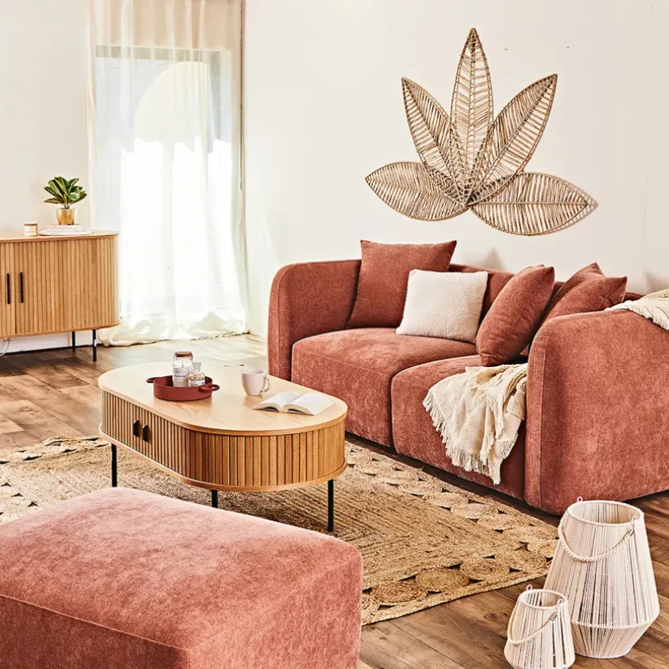 Le canapé Andréa 3 places terracotta avec pouf est un excellent choix pour ceux qui recherchent un canapé à la fois confortable et stylé.