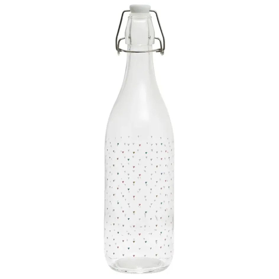 Laissez-vous séduire par cette magnifique bouteille de 90cl qui arbore un charmant motif de petits cœurs multicolores.