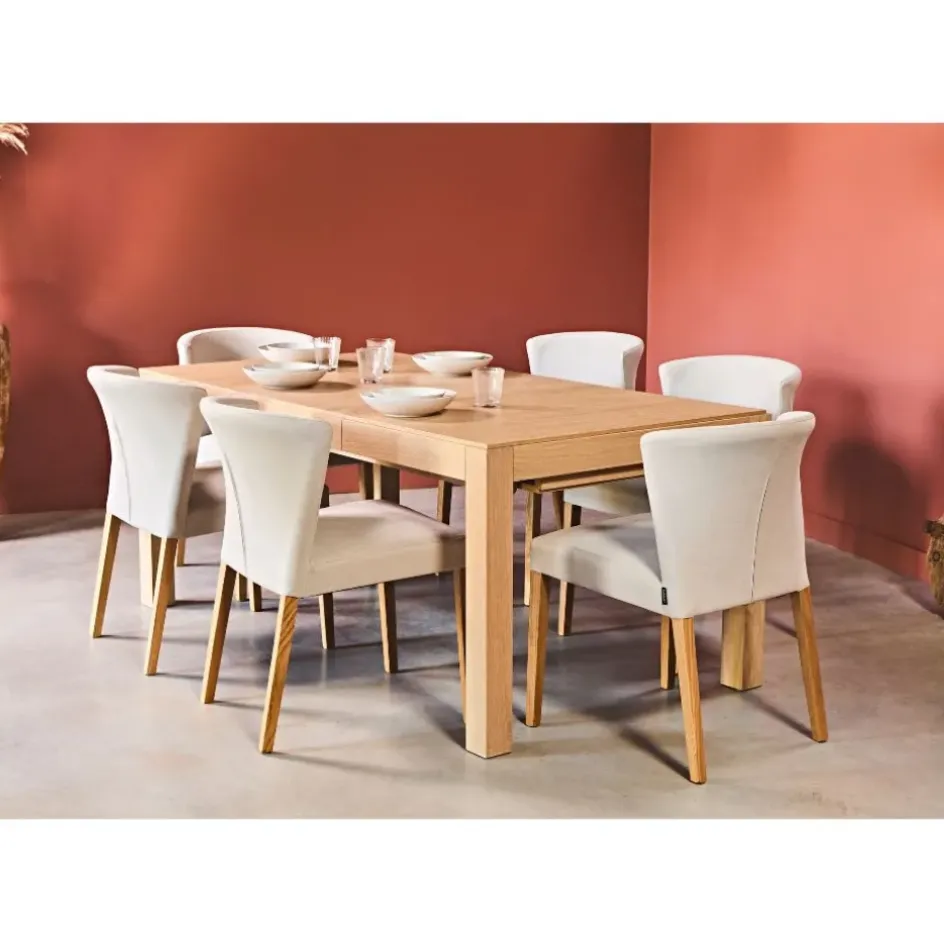 Très élégante, la chaise Valentina en tissu italien grège et pieds en chêne trouve facilement sa place dans votre intérieur.