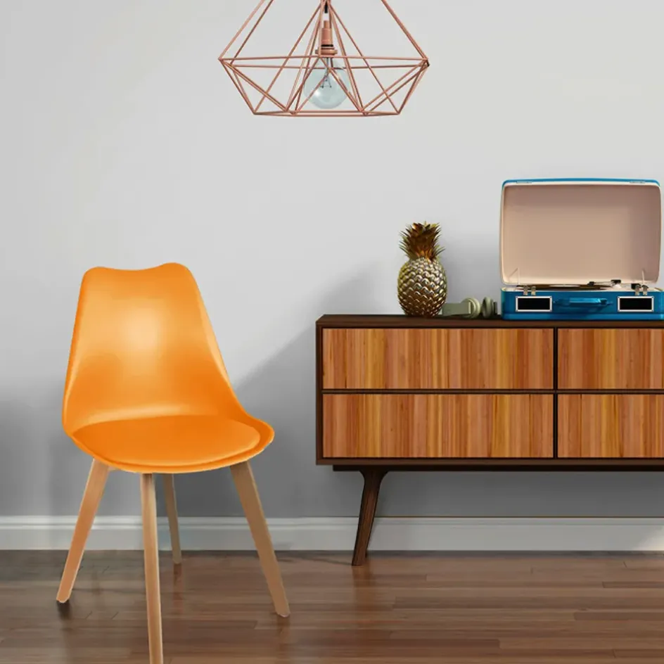 Apportez une touche de gaieté et de confort à votre intérieur avec la chaise scandinave en plastique jaune rembourrée.