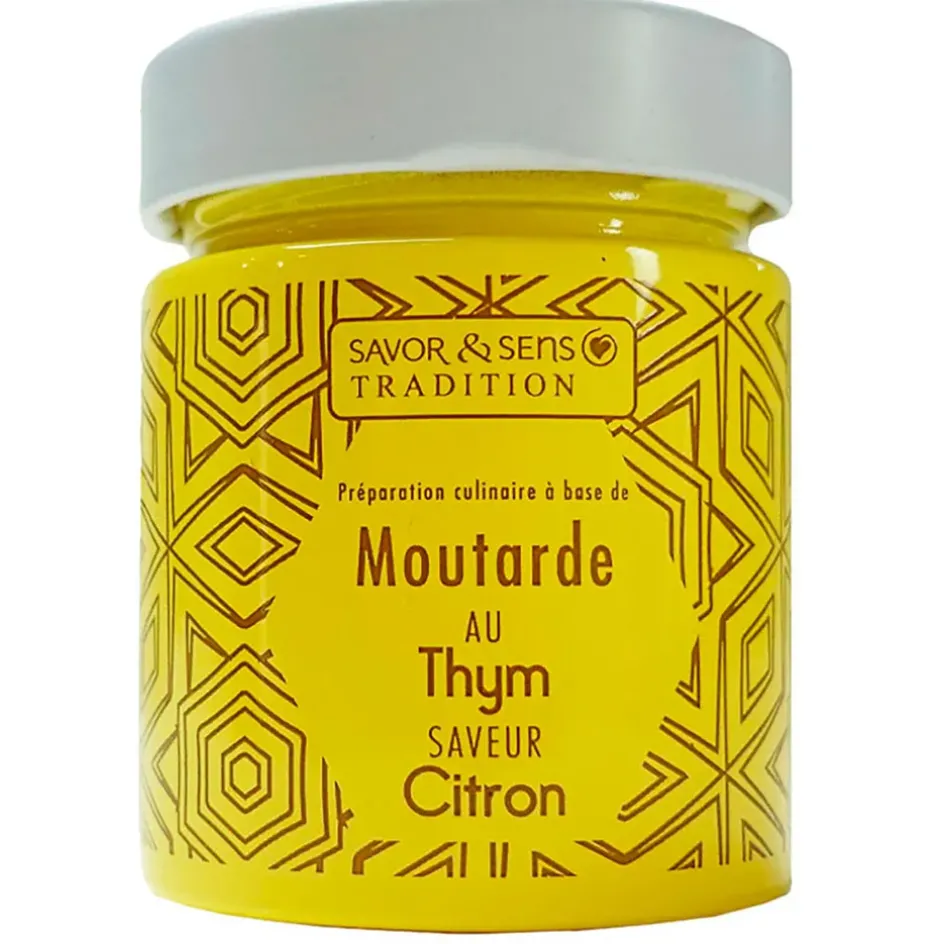 Cette moutarde au parfum de thym et zeste de citron est un véritable atout pour ceux qui apprécient les mélanges savoureux et originaux.