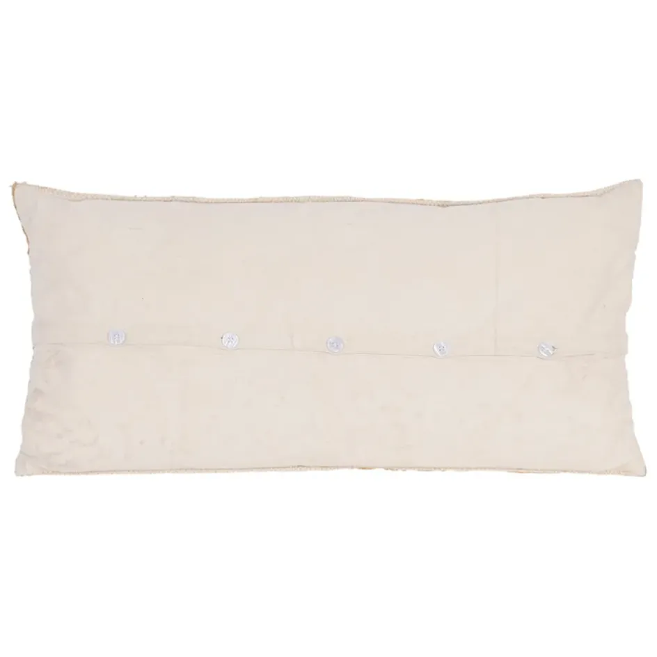 Ce coussin se distingue par sa forme rectangulaire et sa couleur sauge, qui lui confèrent un charme naturel et apaisant.