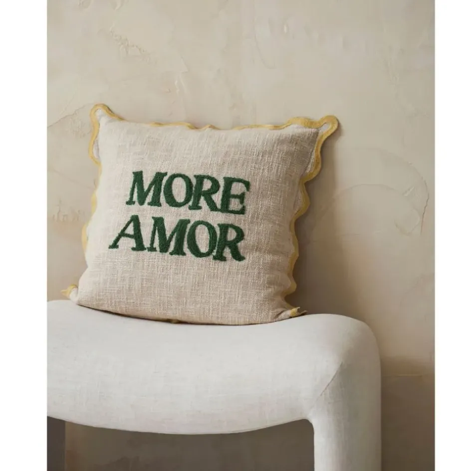 Transformez votre espace de vie avec notre housse de coussin brodée ‘More Amor Lumi’.
