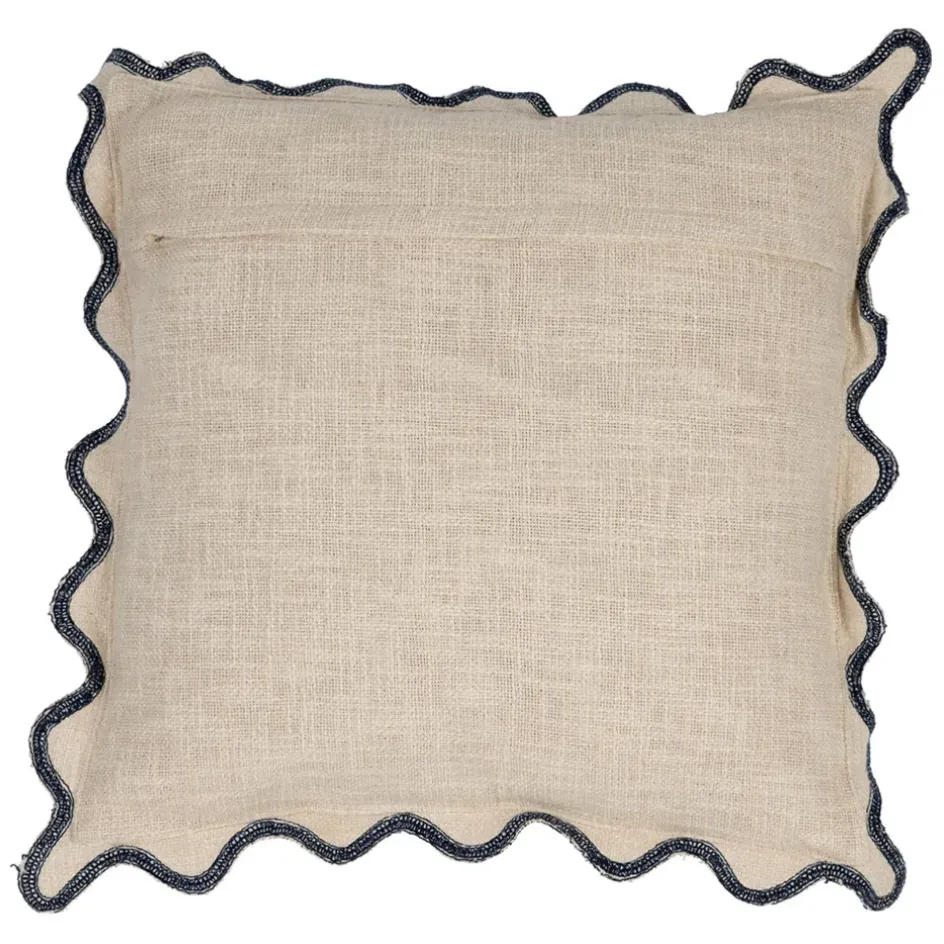 Son contour ondulé, souligné par un liseré bleu marine, ajoute une touche graphique et originale qui attire le regard.