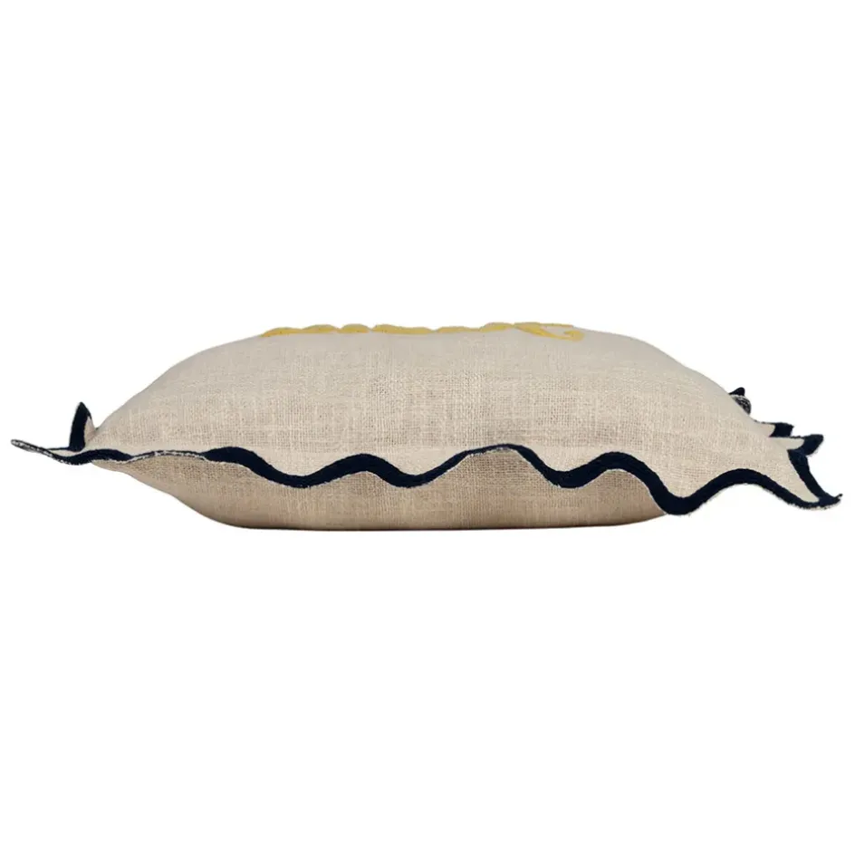 Fabriquée en coton beige, elle arbore une broderie jaune éclatante qui apporte une touche ensoleillée et pleine de charme à votre décoration.