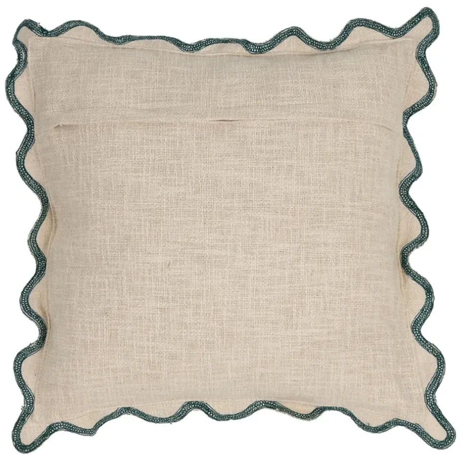 Son contour ondulé en vert émeraude crée un contraste subtil mais remarquable, apportant une note de fraîcheur à votre canapé, fauteuil ou lit.
