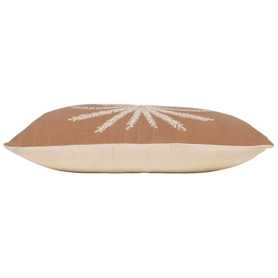 Apportez une touche exotique et chaleureuse à votre intérieur avec cette housse de coussin brodée « Nomadea » en coton terracotta.