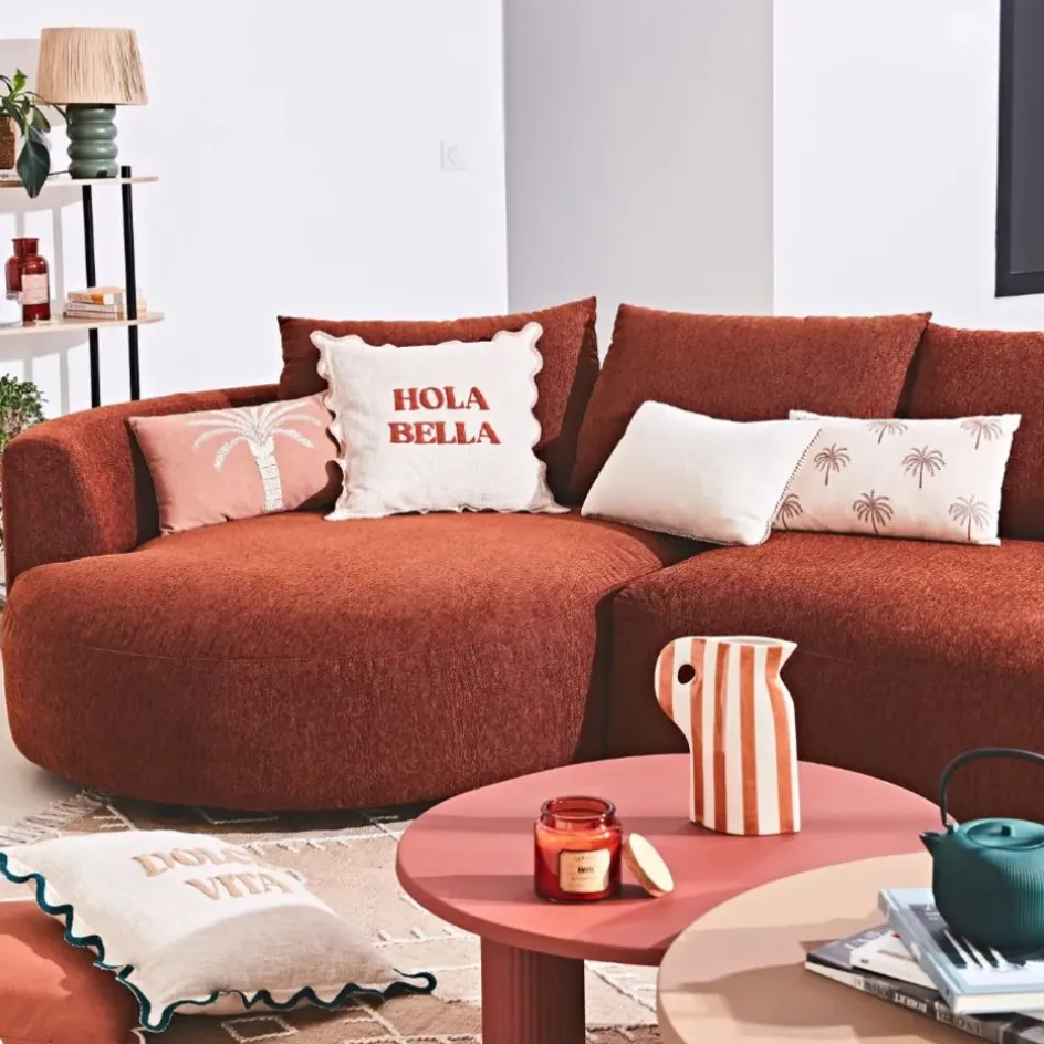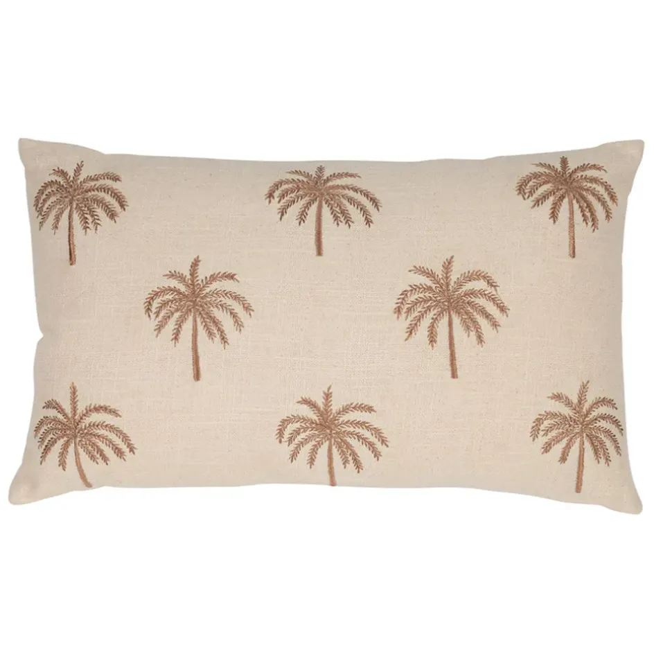 Le coton écru, doux et naturel, s’accorde avec tous les styles de décoration, tandis que les palmiers brodés en fil marron ajoutent un joli contraste et du caractère.