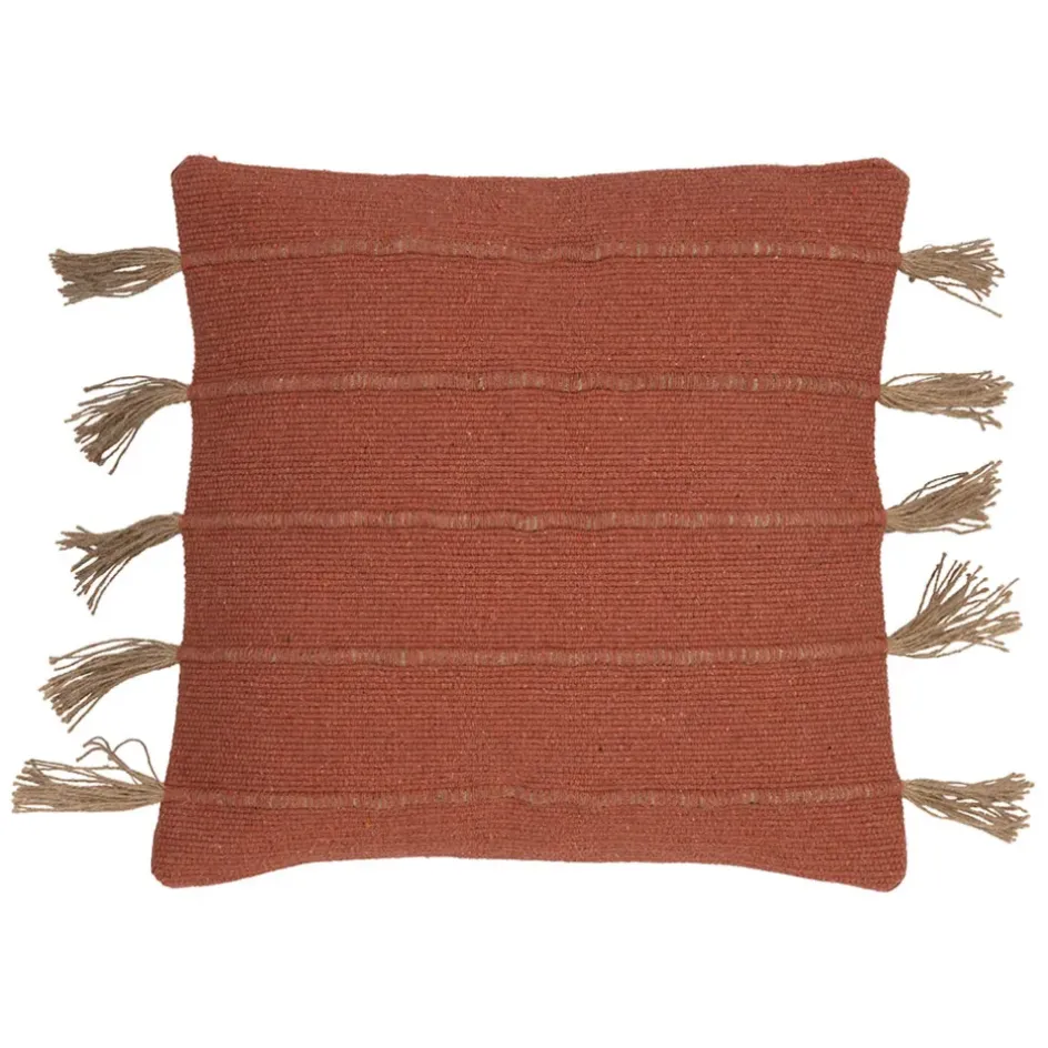 Apportez une touche naturelle et chaleureuse à votre intérieur avec la housse de coussin « Kolore » en coton et jute terracotta.