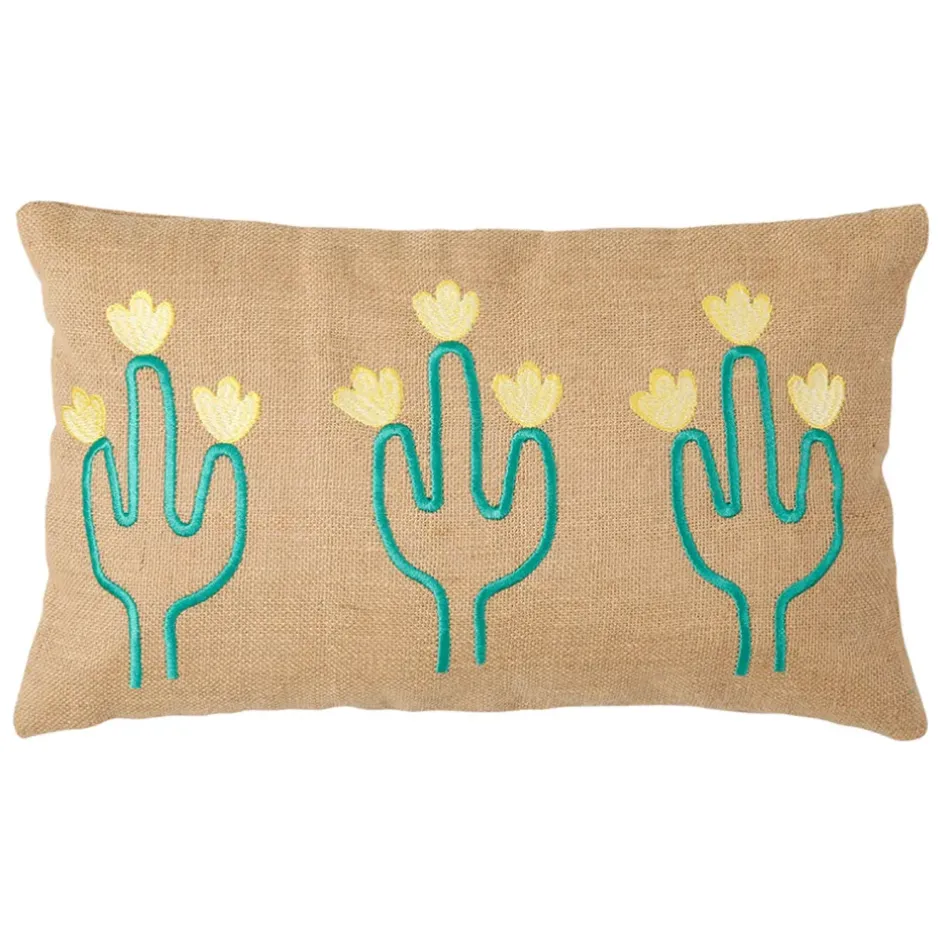 Cette housse de coussin combine l’authenticité de la jute naturelle avec la fraîcheur du coton vert.