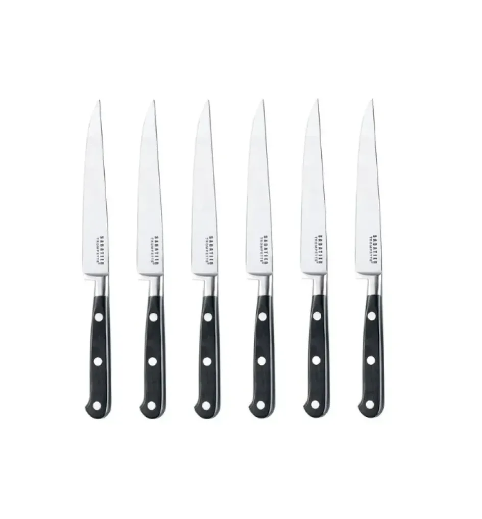 Découvrez notre élégant Coffret Couteau Sabatier Trompette, comprenant 6 couteaux à steak avec des lames en acier lisse pour une découpe précise et impeccable. Parfait pour sublimer vos dégustations de viandes.Manche ABS noir, 3 rivets inox