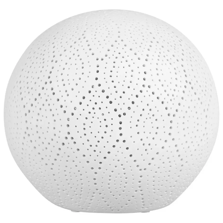 Craquez pour une jolie lampe en porcelaine. Cette boule offrira une lumière tamisée et originale grâce à ses trous de lumières ondulés qui refletteront au sol et au mur de magnifiques formes en losange.Porcelaine