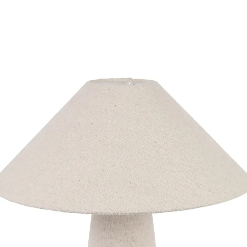 Découvrez la magnifique lampe Calypsa en coton et fer blanc cassé, d’une hauteur de 46 cm.