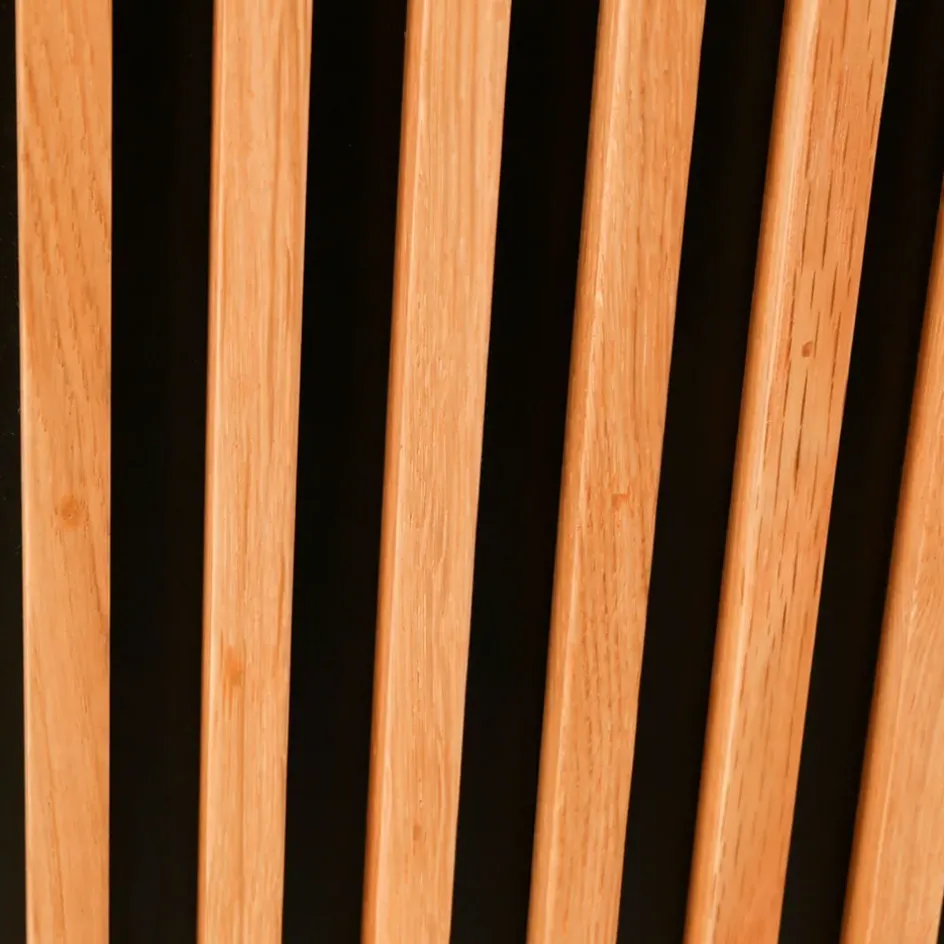 nitrocellulosique / tiges de chêne massif, vernis nitrocellulosique collés sur toute la devanture Pieds : acier, peinture à l’huile Etagères amovibles Poids maximum supporté : 100 kg Pieds à monter soi-même