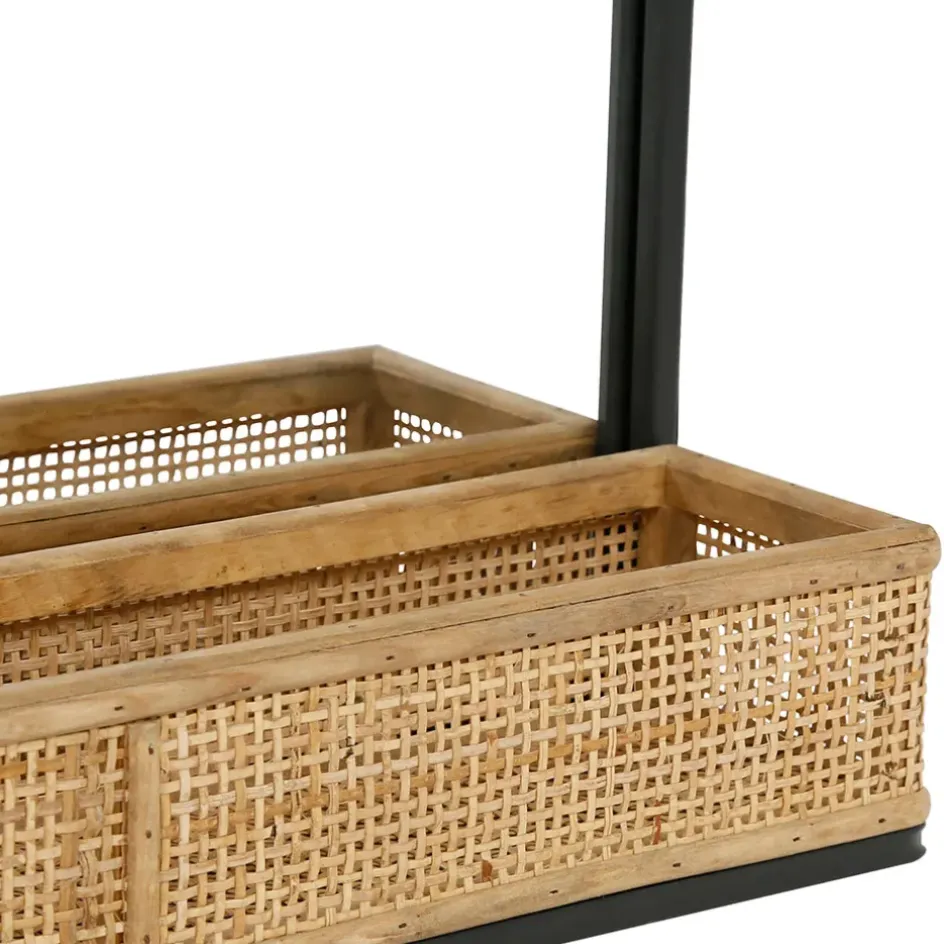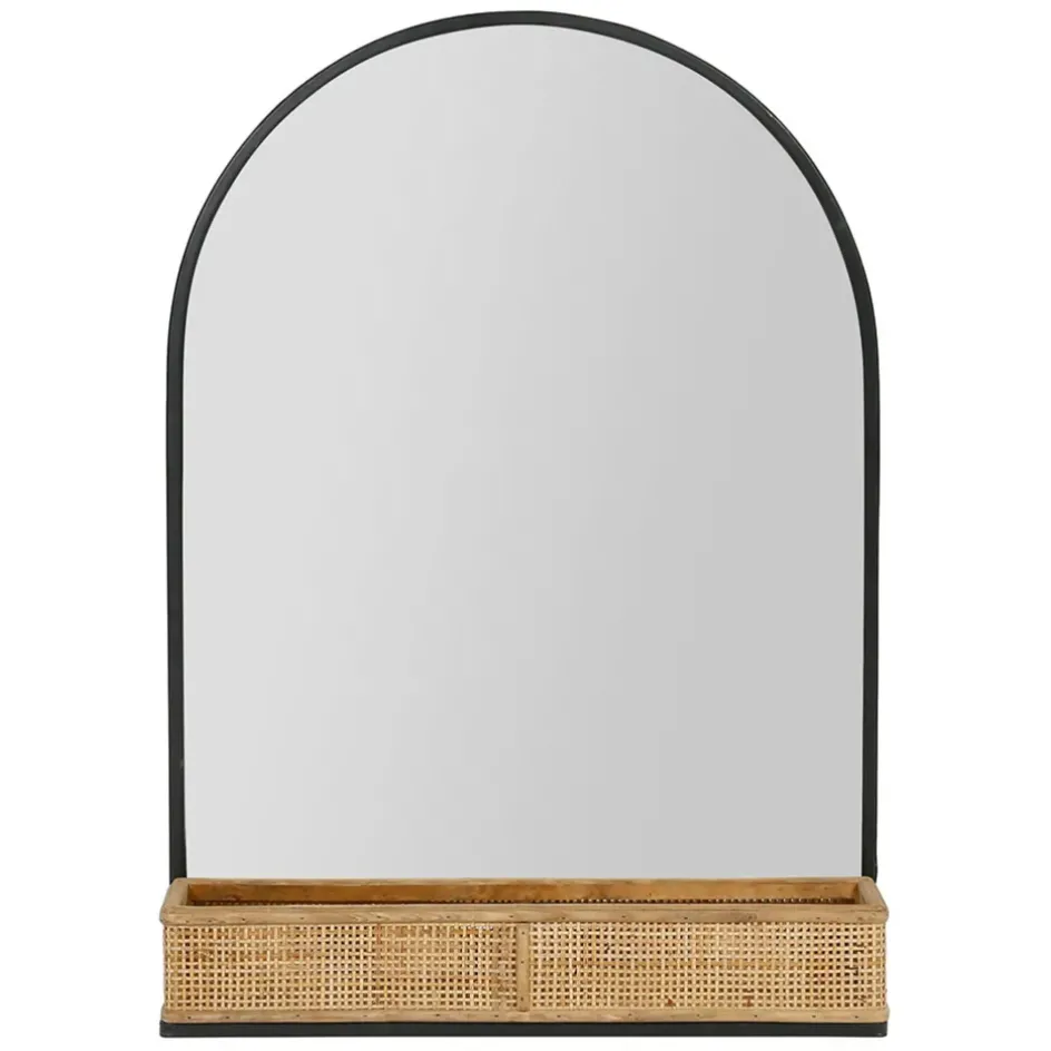 Optez pour ce miroir en fer noir avec étagère en bambou pour une combinaison harmonieuse de design et de fonctionnalité dans votre décoration intérieure.Fer et bambou et mdf et miroir.
