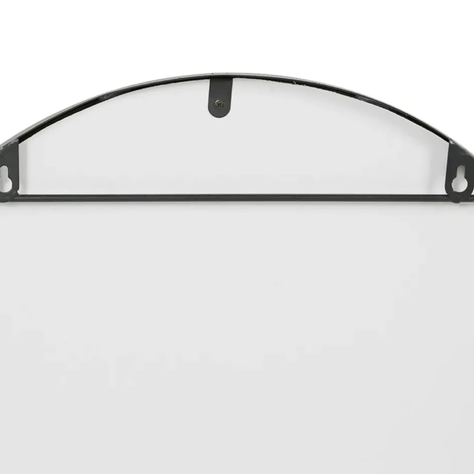 Ajoutez une touche moderne et fonctionnelle à votre espace avec notre miroir en fer noir aux lignes arrondies, accompagné d’une étagère en bambou naturel.
