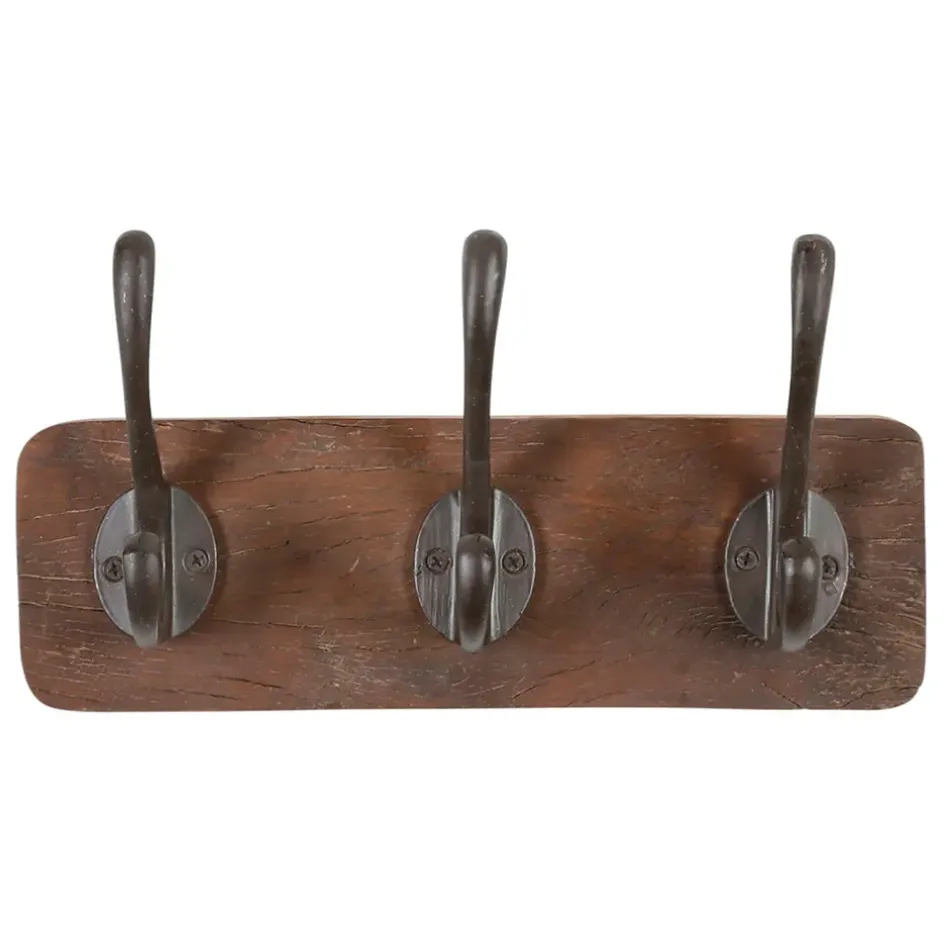 Découvrez la patère 3 crochets en shorea et ferrier brun 31x17cm – Campagne, un accessoire de décoration incontournable pour votre intérieur.