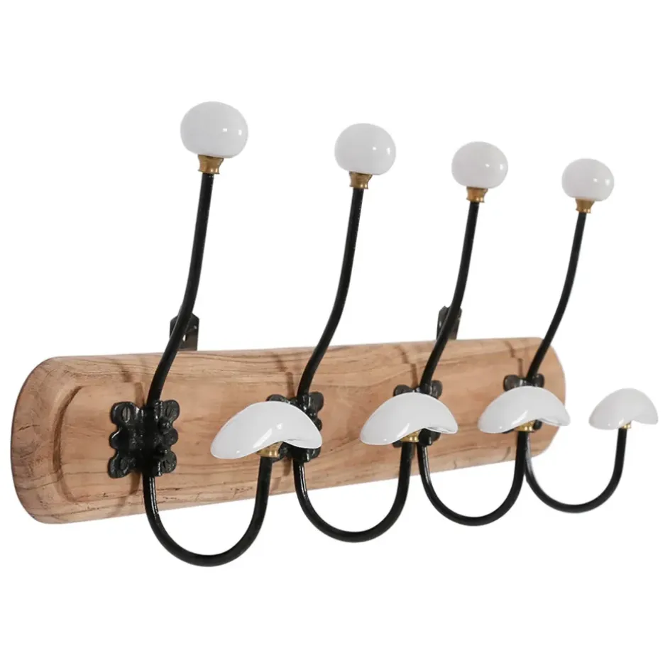 Découvrez la Patère 4 crochets en acacia et fer naturel et blanc de dimensions 60x23cm – Campagne, une véritable perle de décoration pour votre intérieur.