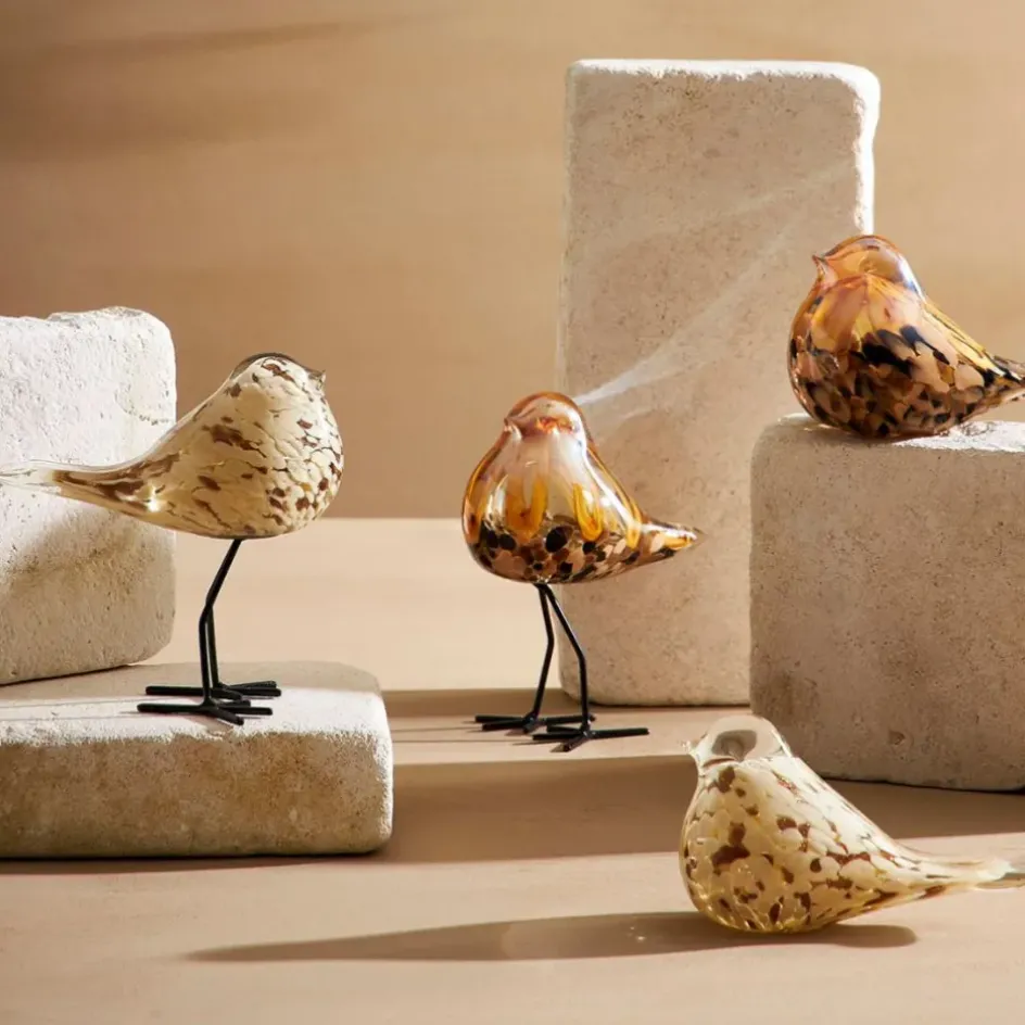 Le corps du moineau, en verre beige, est subtilement orné de détails dorés, créant un effet visuel attrayant et apaisant.