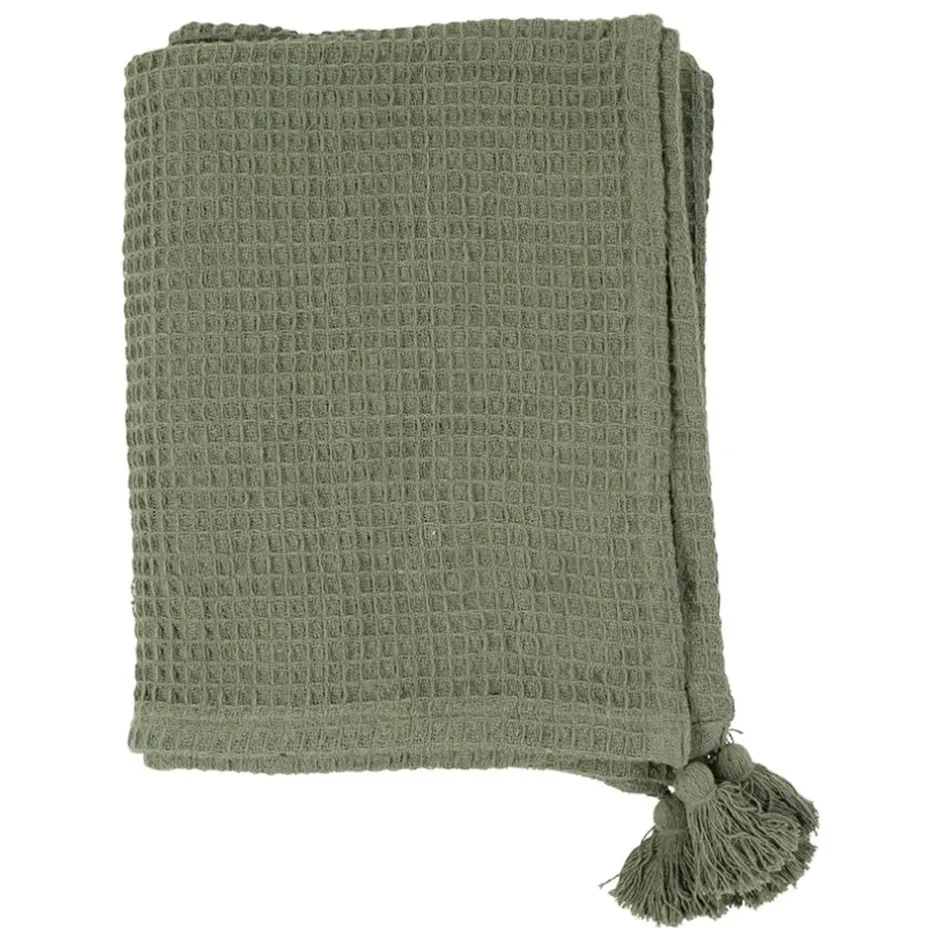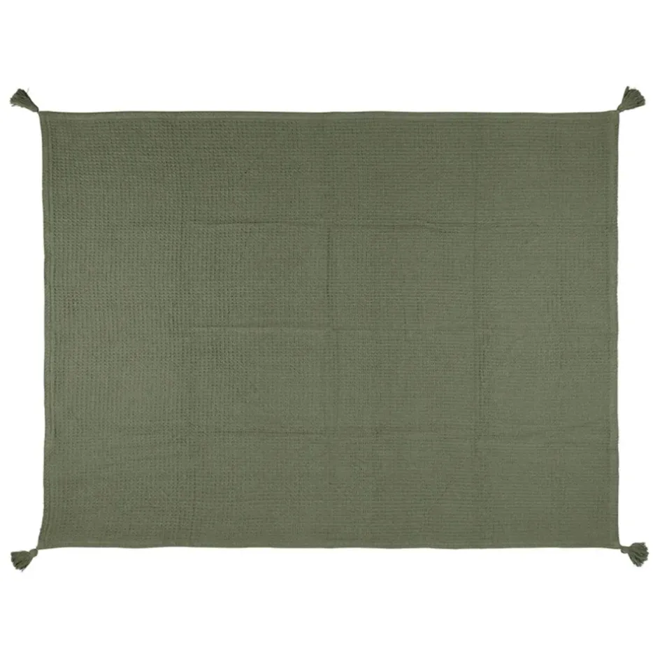 Découvrez ce magnifique plaid en coton vert de dimension 170x130cm de la marque Beezz.