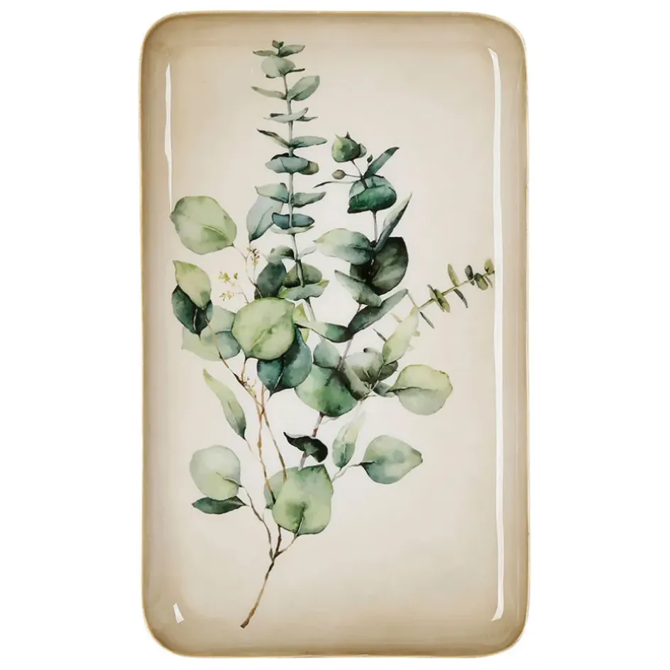 Plateau rectangulaire vert et doré en fer et eucalyptus classique, mesurant 15×25.5cm. Ajoutez une touche d’élégance à votre décoration avec ce plateau polyvalent.Fer / Iron