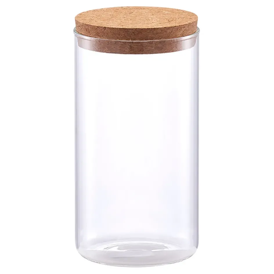 Découvrez notre bocal en verre de 1.1L avec un couvercle en liège, parfait pour conserver vos aliments frais tout en ajoutant une touche d’élégance à votre cuisine.Verre et manguier.