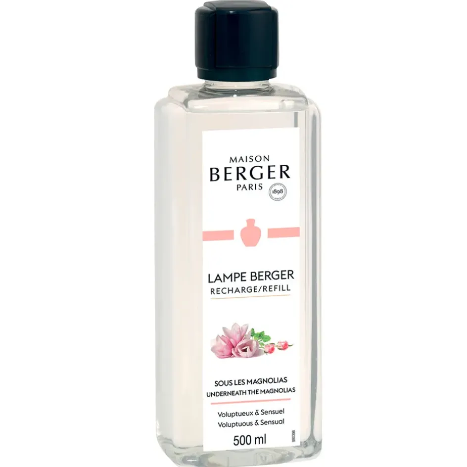 La recharge parfum pour lampe 500ml sous les magnolias de Maison Berger est spécialement conçue pour optimiser la diffusion du parfum grâce à la technologie de catalyse.