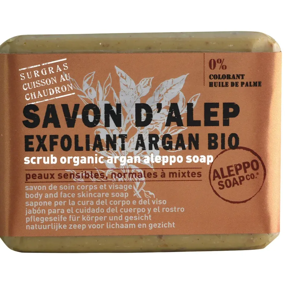 Venez découvrir notre Savon d’alep exfoliant argan bio 100g de la marque Aleppo Soap co à découvrir sur Fabrique de StylesPapier, PP, PE-LD