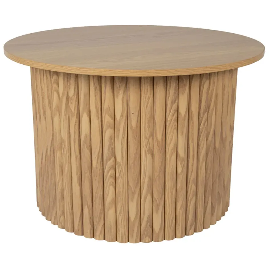Placez la table basse ronde en panneau de bois naturel Saori au cœur de votre salon, pour un intérieur contemporain et convivial.