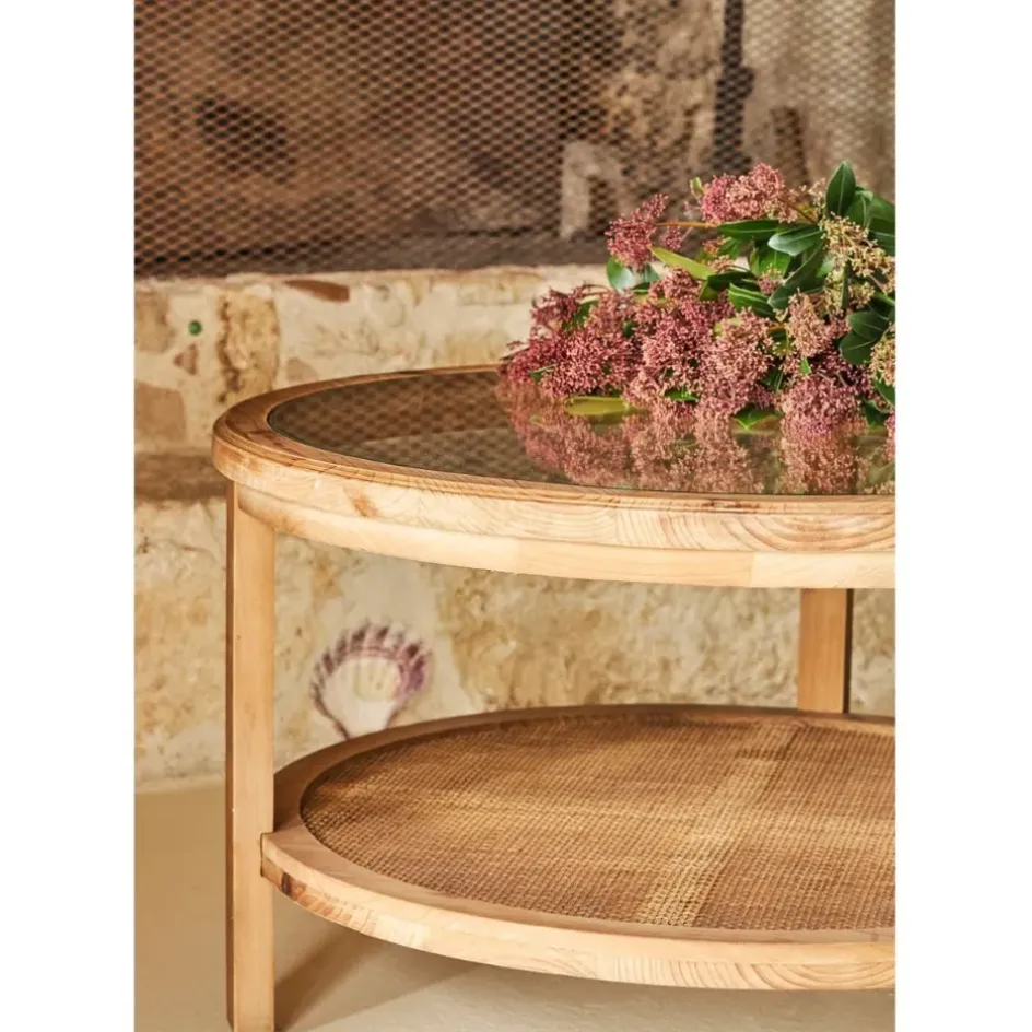 Profitez d’une pièce unique qui mêle utilité et caractère, idéale pour donner vie à vos moments de détente.Sapin + rotin + verre trempé