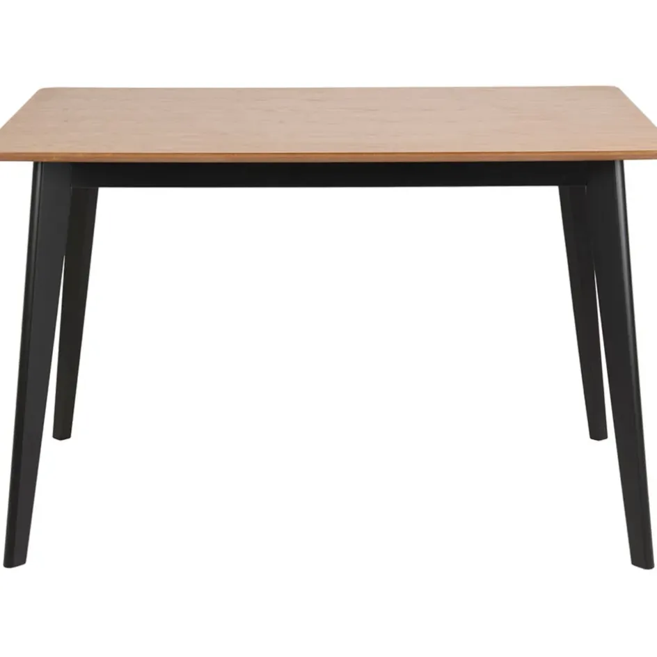 Les lignes courbes et les coins légèrement adoucis confèrent à la table de salle à manger un attrait classique, tandis que les pieds peints en noir ajoutent une touche saisissante.