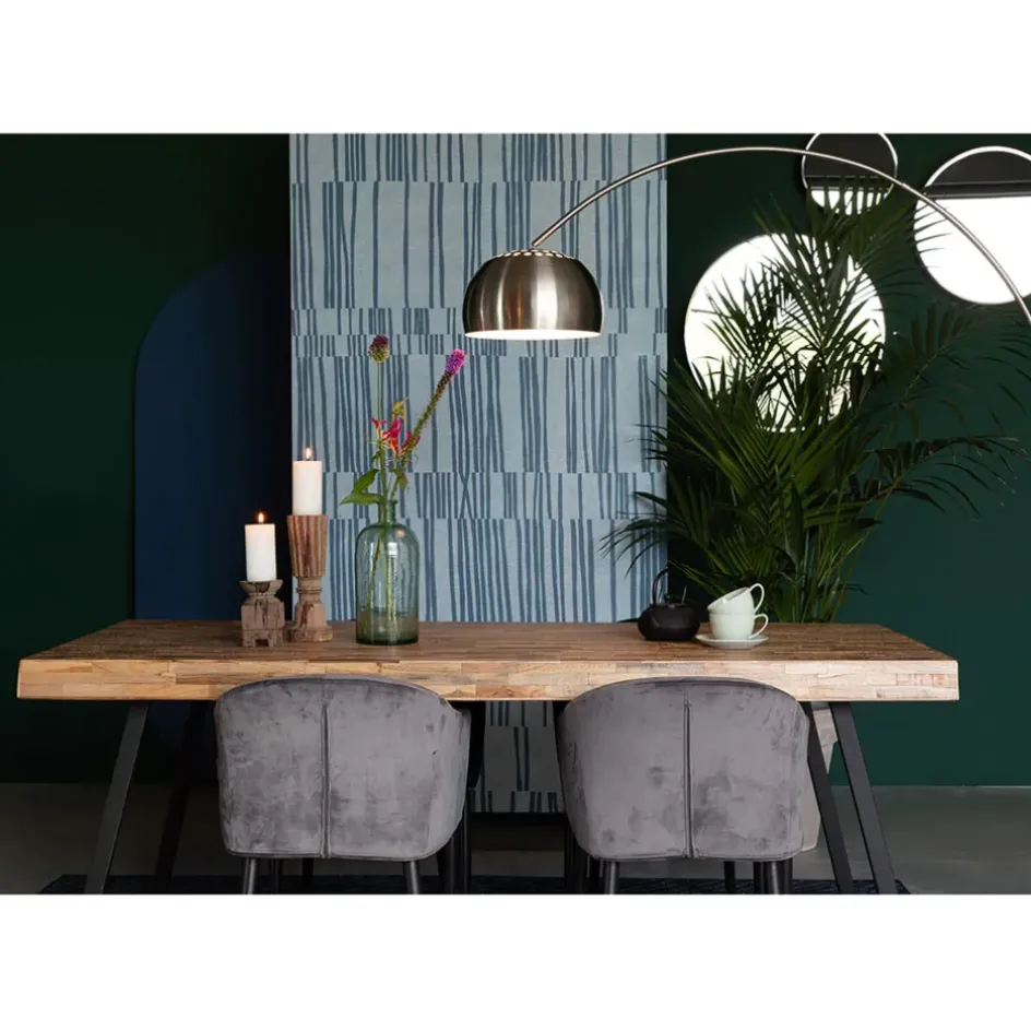 Cette Table de repas Suri est une table moderne, en teck recyclé, pour acceuillir 6-8 invités.Plateau en teck recyclé avec finition laquée naturelle à base d’eau. Structure en acier avec revêtement en mélaminé noir antique.