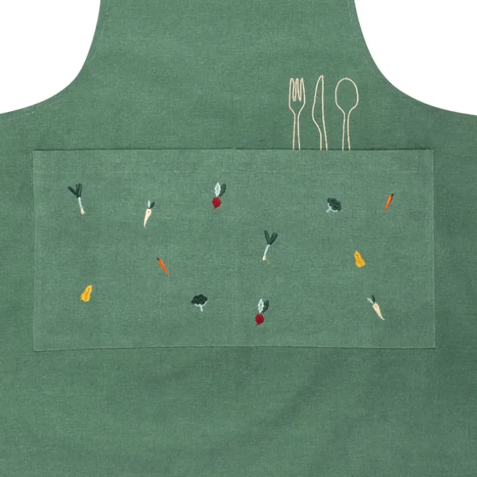 Découvrez notre tablier en coton vert, un compagnon ludique incontournable pour toutes vos aventures culinaires!