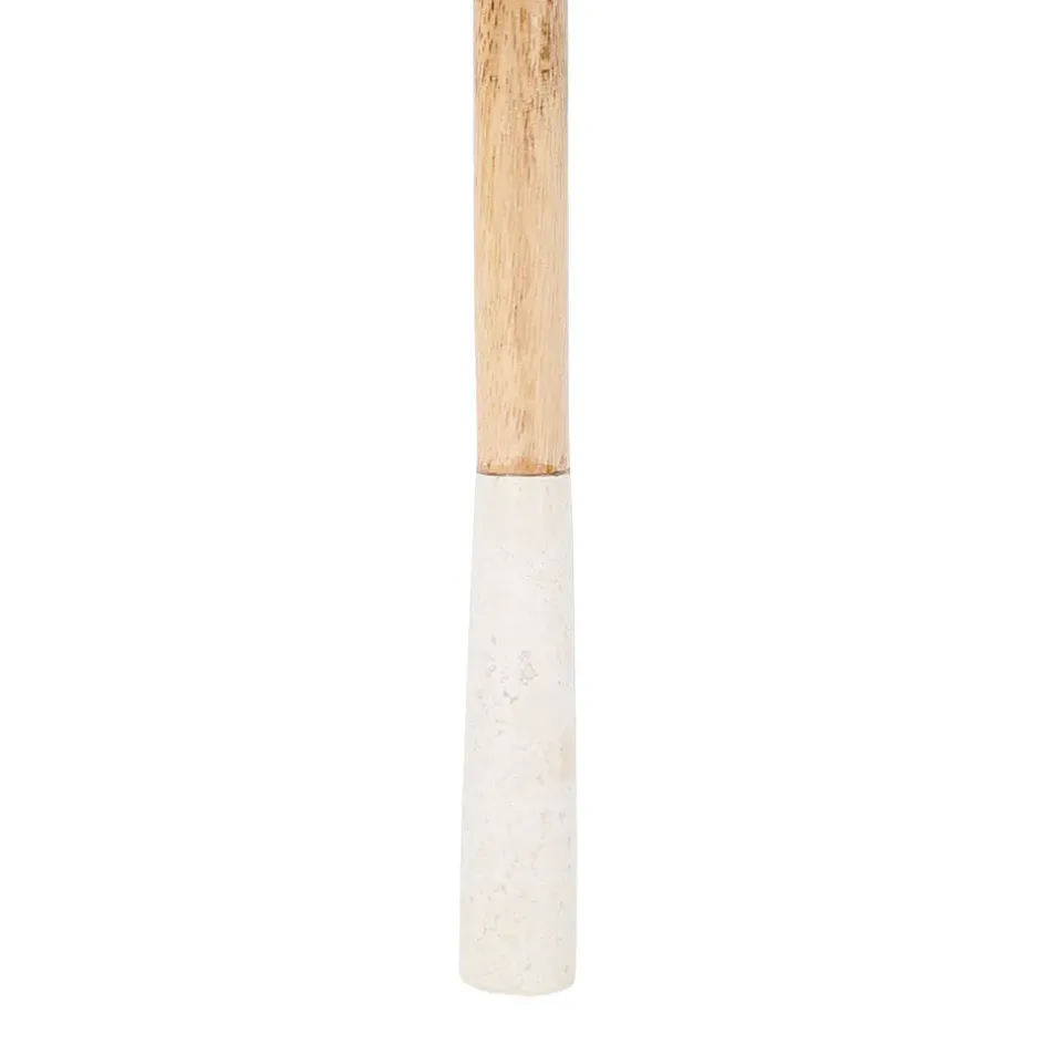 Le marbre donne une sensation de fraîcheur et de robustesse, tandis que le bois de manguier, avec ses nuances dorées, offre une prise en main confortable et une résistance appréciable.