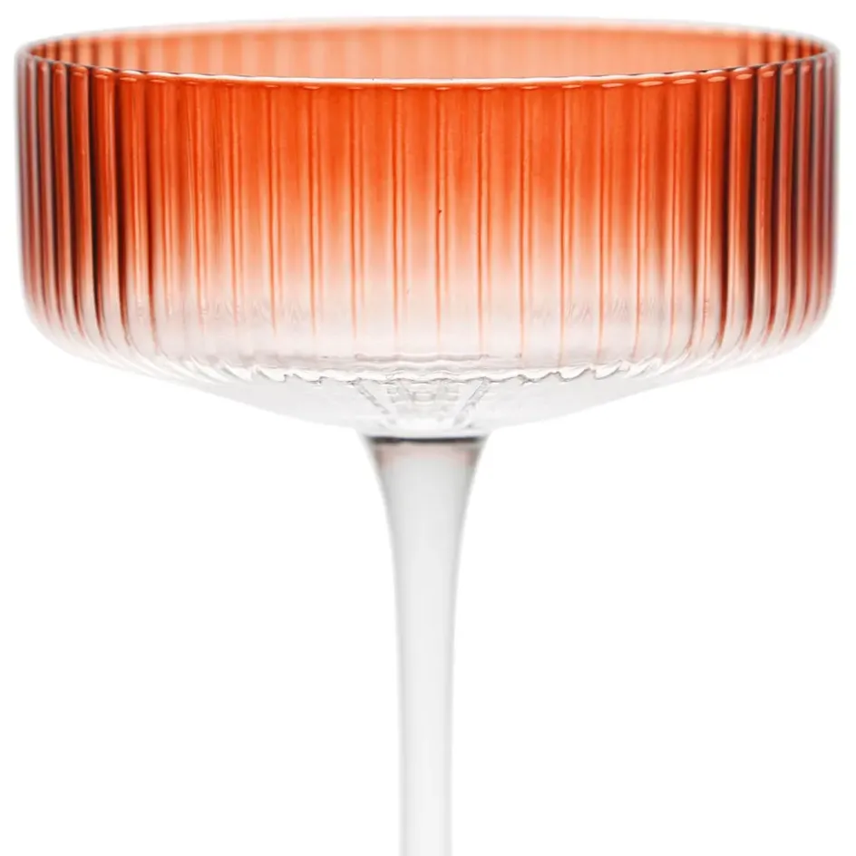 Découvrez notre verre à pied en verre terracotta, la coupe de champagne striée qui apportera une touche d’originalité à vos moments festifs.