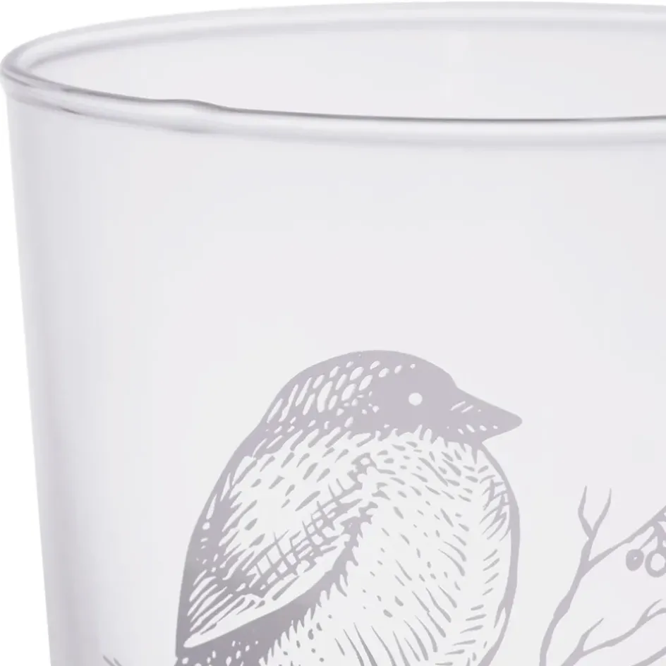 Apportez une touche nature et élégante à votre table avec le gobelet en verre Bodega, orné d’un motif raffiné d’oiseau blanc.